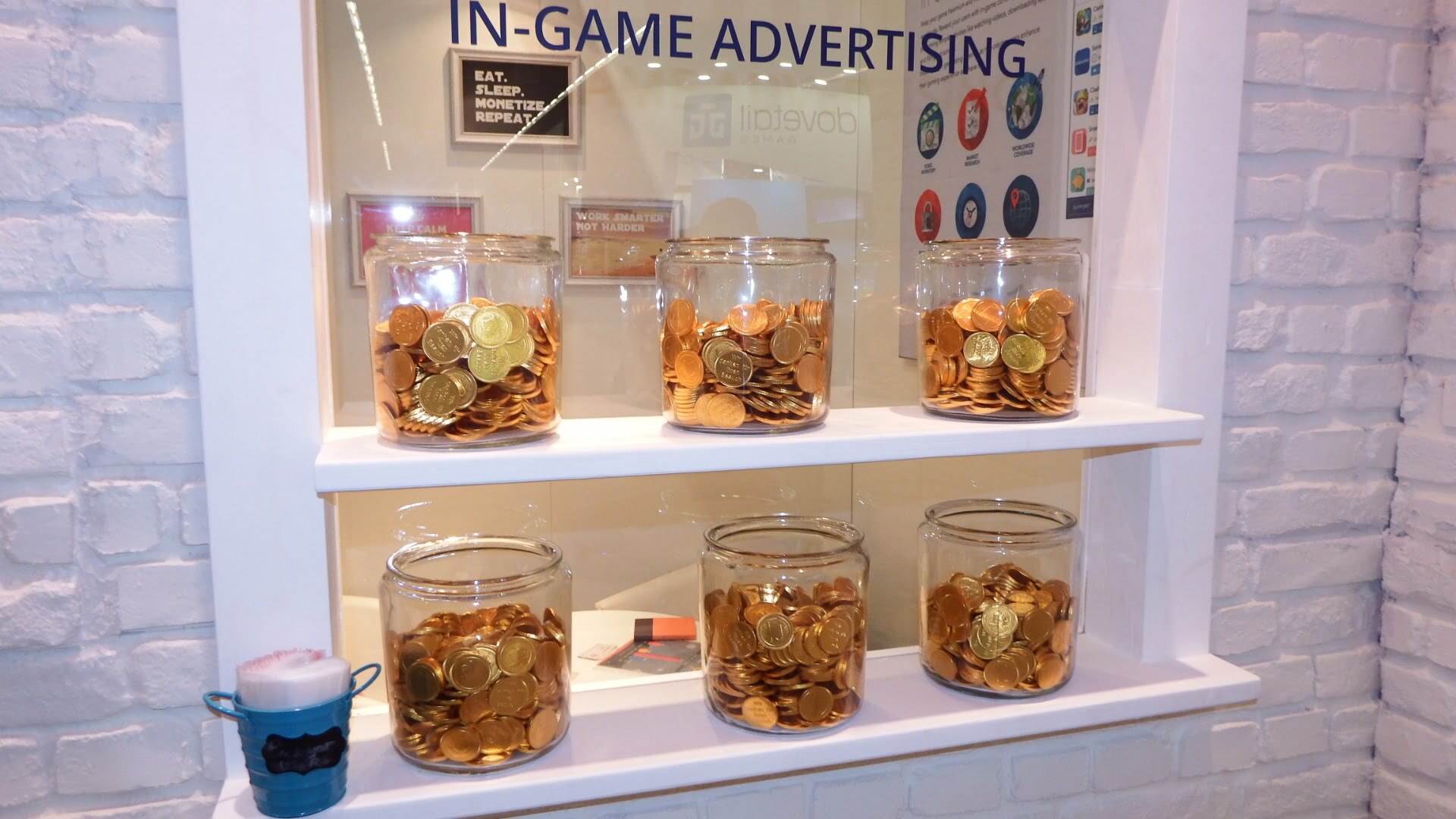 For us, it was extremely important to come up with something creative and eye-catching that would stand out from the general ‘landscape’. After long brainstorming and sleepless nights, we came up with the idea of ‘One-stop-shop’, since Persona.ly is a place where developers can find all the solutions they need (monetization and user acquisition). Once we had this vision, we started thinking about unusual ways that we could attract trade visitors to our booth (see the photos below).
