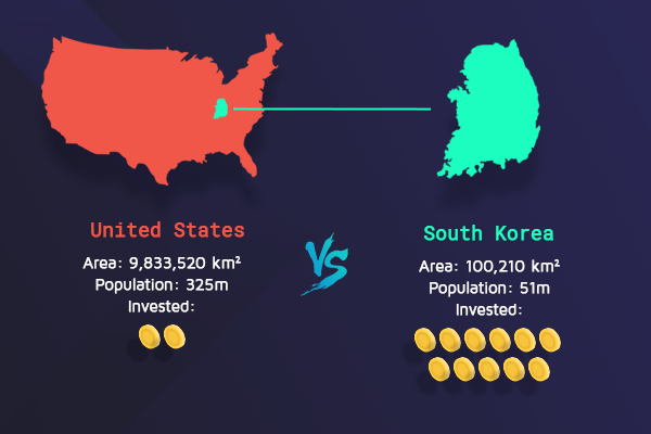 Let’s start off by understanding what makes Korea’s Internet speeds so great. You’ll probably be surprised by the fact that during 1988-2002 the Korean government invested 11 billion dollars in DSL infrastructure, while the United States government invested a measly amount of 2 billion dollars.
