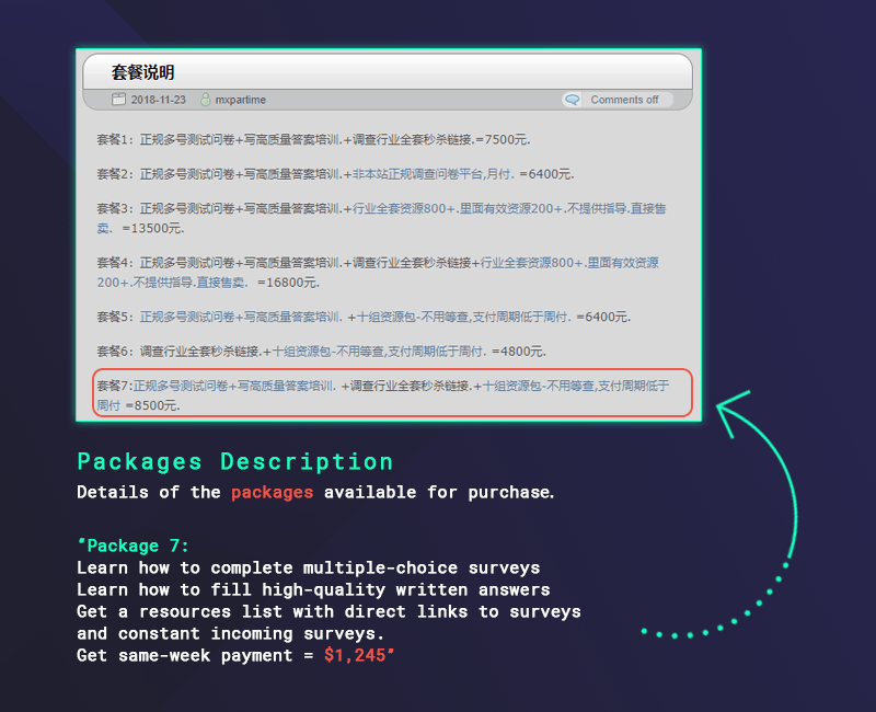 Let’s start with what is this website – “mxpartime” is a website where the creator of “Sandybucks” teaches GPT fraud. The participants (i.e users) pay according to the type of “class” they want to take, where they learn everything they need to know to successfully complete a survey and get rewarded.