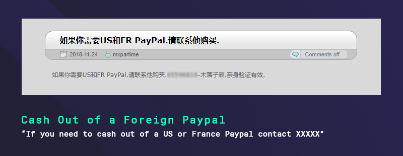 Another example of fraud is in this example, where “Sandybucks’” owner offers assistance in cashing out from a French Paypal account: