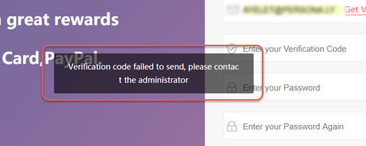 SandyBucks is a seemingly ordinary reward program website, but once we tried signing up we immediately received an error message. This was no coincidence, we tested it and quickly concluded that there’s no “Sandybucks” beyond this signup page – it’s just a front. At this point, we knew that this traffic, although it looked legitimate, was fraudulent.