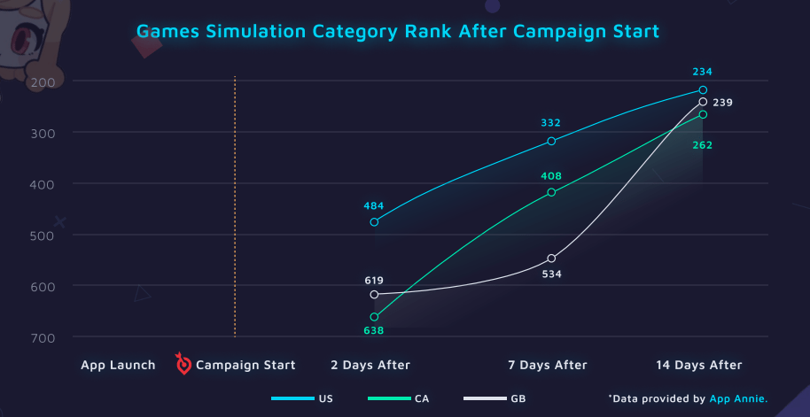 Being the only paid channel also allows us to measure the impact of our acquisition on the store category rank for Yurufuwa in the countries where we promoted it.