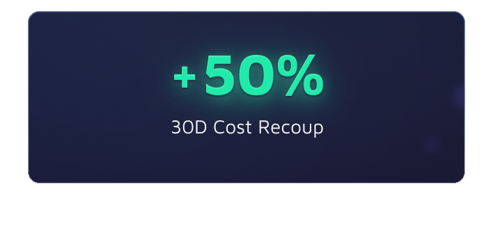 As soon as we could apply it, targeting was focused on users with higher potential to become frequent traders, which lead to extremely effective acquisition, with users converting in very high rates (83%) in the deeper funnel events, and recouping 50% of their FTD cost within 30 days of installing due to a high volume of transactions in their initial weeks of usage.