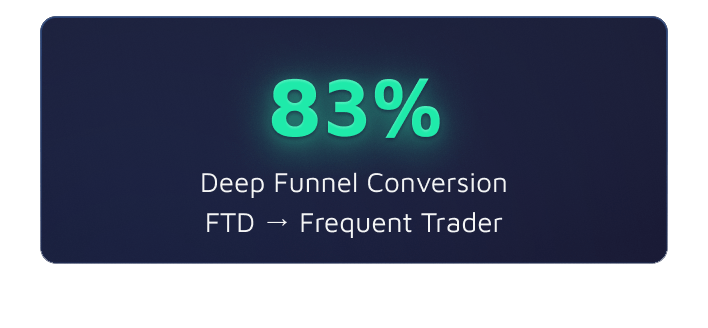 83% deep funnel conversion from first deposits to trader status, significantly above the KPI