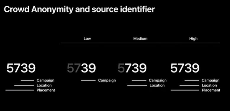 Here is an example of how the 4-digit source identifier works at different crowd anonymity levels.