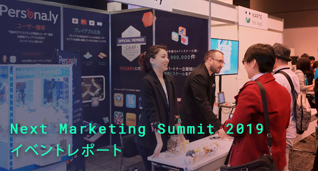 パーソナリは、今年で2回目となるNext Marketing Summitに出展しました。国内最大級のアプリマーケティングイベントで、昨年の出展を上回るビジターにブースにお立ち寄りいただき、とても有意義なイベントとなりました。